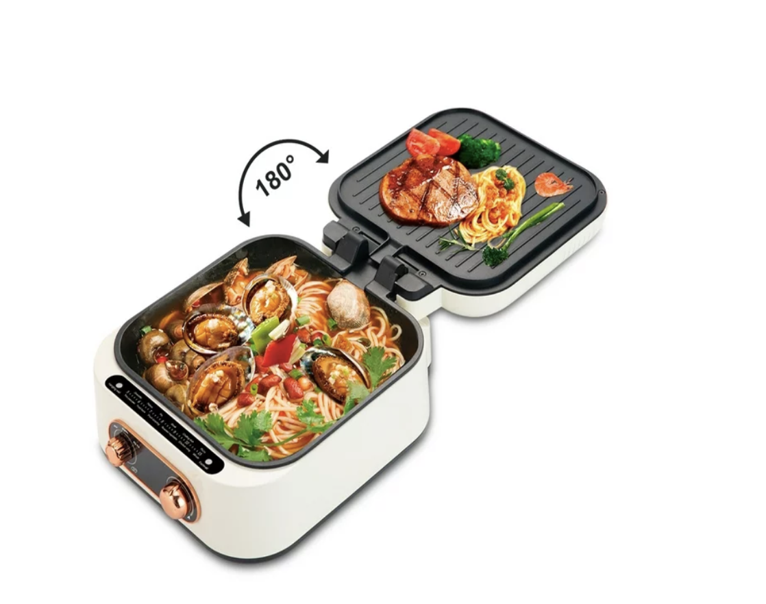 - Multipurpose: grill, broil, fry, roast, cook, stew