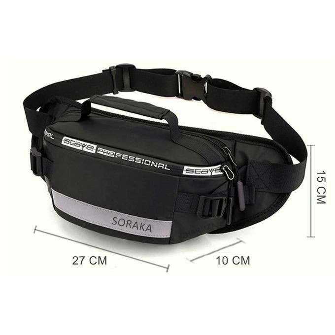 - 3 adjustable straps: 2 front and 1 waist adjustable strap