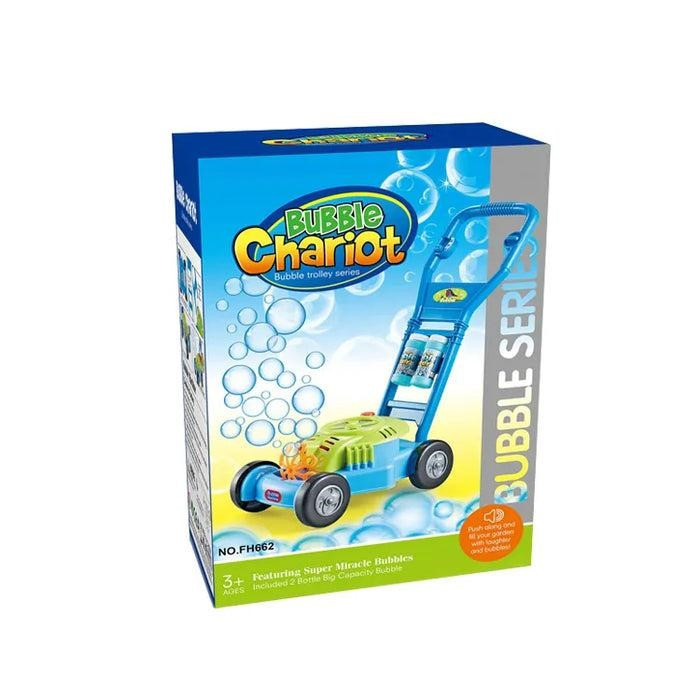 arents will love the newly designed bubble wheel with mess-free construction. Assembly is quick and easy. Simply slide the ends of the handles on to the mower, Install the bubble bottle at the bottom, and need 3 * 1.5V AA batteries (not included) and you’re ready to go