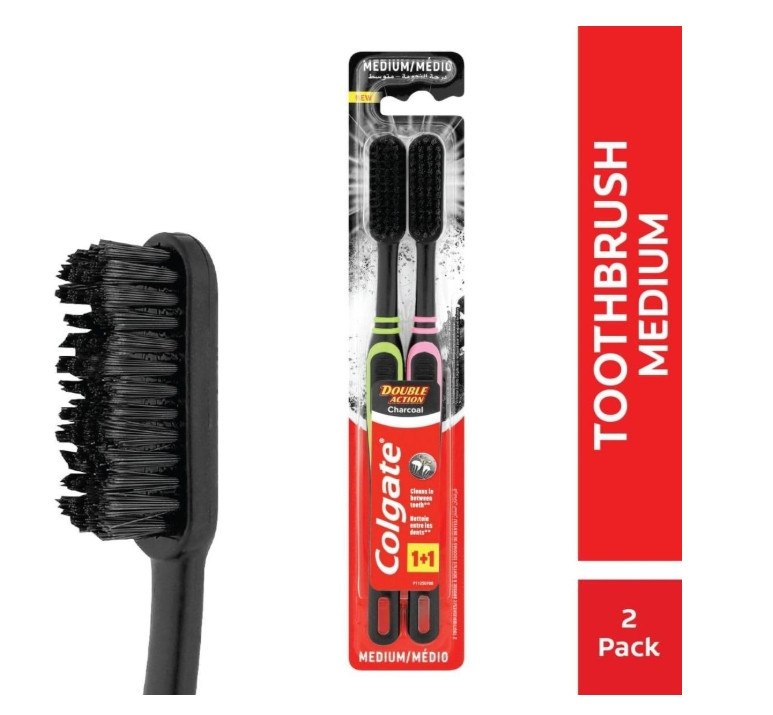 Colgate Double Action Charcoal Toothbrush 2-Piece Set, Medium