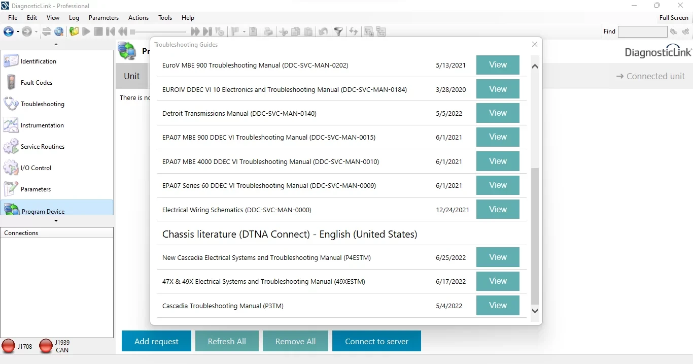 DETROIT DIESEL DIAGNOSTIC LINK for fault code diagnosis, troubleshooting, reading/editing parameters, on: ddec 6 to ghg17 engine platforms up to current year.