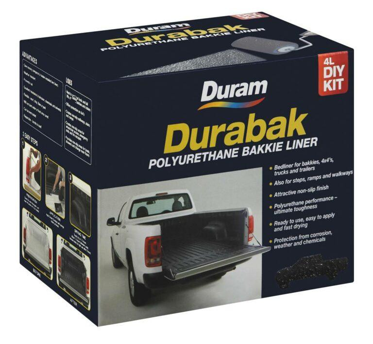 Duram Durabak is a versatile single pack polyurethane non-slip coating for bakkies, trucks, trailers and other areas where a long lasting, tough protective liner is needed. It has an attractive, tough, textured finish with excellent capacity to repel water and withstand abrasion and chemical splashes.