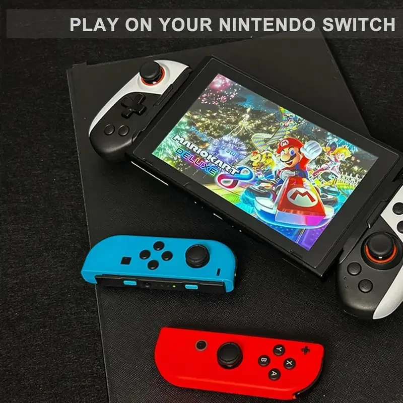 Versatile Compatibility: Elevate your gaming experience with the Retractable Gaming Wireless Controller, the ultimate mobile gaming controller. Seamlessly connect to a variety of devices, including iPhone, Android, PC, Nintendo Switch, and Apple Arcade, for gaming on the go like never before! Ergonomic Design: Enjoy comfort and control with the ergonomic design and responsive buttons of this controller. Its retractable feature allows for compact storage and portability, making it the perfect companion for your gaming adventures, whether battling foes in action games or exploring virtual worlds. Three modes in one machine:Easily switch between Standard Mode, Nintendo Switch Mode, and Direct Play Mode to adapt to various gaming scenarios. Enhance your gameplay experience with versatile options tailored to your gaming needs. Wireless Freedom: Enjoy wireless gameplay with a range of up to 33 feet (10 meters) for unrestrained movement. Made with high-quality materials, this gaming controller offers durability and precision for hours of uninterrupted gameplay. Say goodbye to lags and delays - the Retractable Gaming Wireless Controller ensures a smooth and immersive gaming session every time. Long Battery Life: Rechargeable battery provides up to 8 hours of continuous playtime on a single charge. Immersive FeedbackExperience immersive feedback with the symmetrical 3D vibration motor! This feature delivers speed shock and multiple sensations, adding realism to your gaming adventures. Feel every action and movement as you dive into the gaming world.