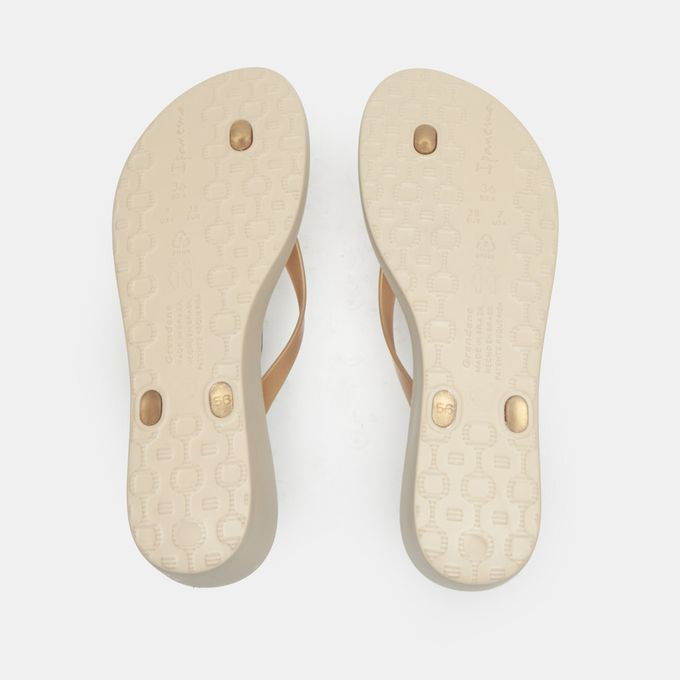 Hit the beach in style and comfort in these durable Ipanema Selfie Sandals Beige. This laid-back flip-flop is fitted with a contoured footbed for supportive feel and sturdy rubber straps to keep your feet securely in hold.