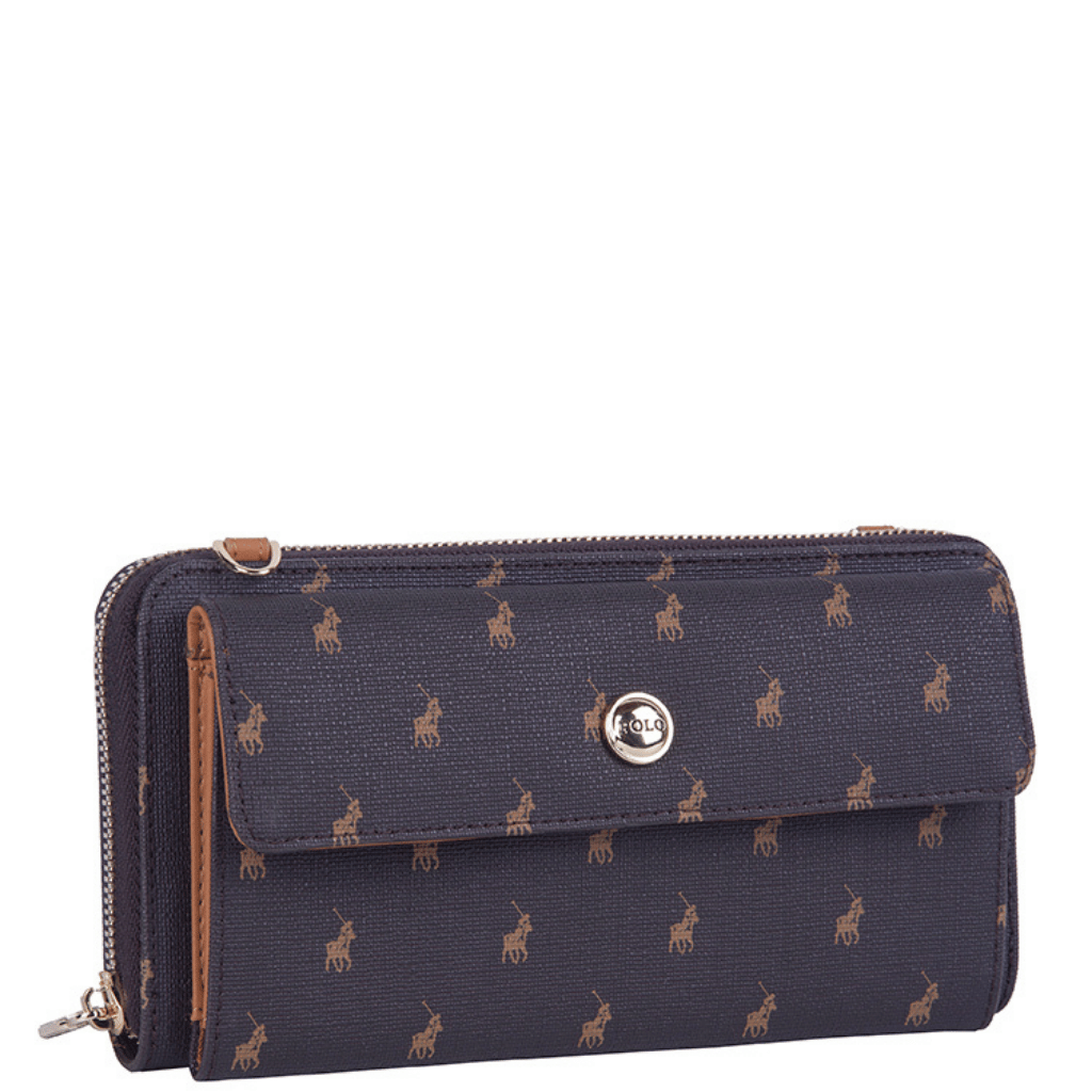 With a detachable shoulder sling, this Polo purse doubles as a compact shoulder sling handbag and is one of their best-selling designs. Covered with the New Iconic pony print design available in cream or brown colour options, the use of metal hardware and the tan trimlines are a wonderful testimony to the fashion of this piece with the brand’s collection.