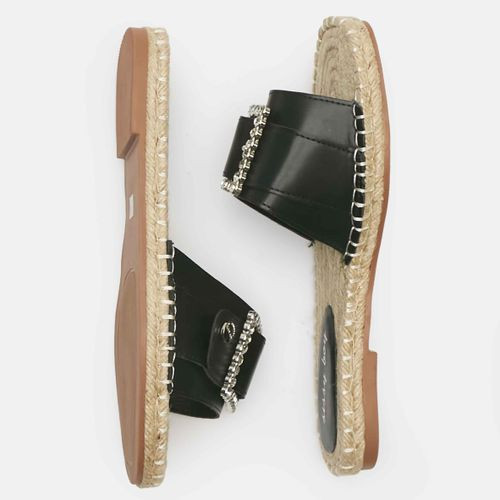 For those beachy days that spill over into hot days evenings out, choose these Sissy Boy Flat Espadrille With Bling Buckle Black that create the ambience of a tropical island look.