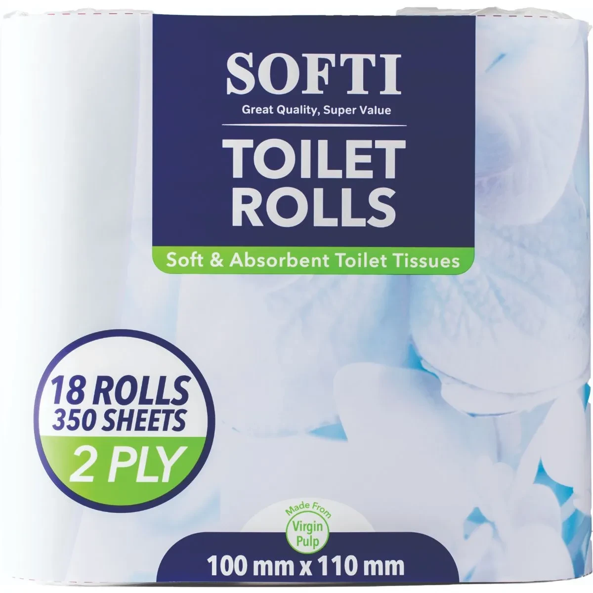 Introducing Softi Toilet Rolls 2-ply, 18 rolls with 350 sheets each. Enjoy softness in every roll, perfect for home or business use. Stock up today and experience comfort at its finest!