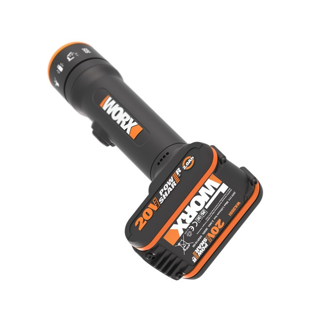 The new WORX 20V Cordless 4-in-1 LED Flashlight WX027.9 light fits four different functions into a single, compact tool. Thanks to the switch you can toggle between the different functions according to your needs: flashlight, lantern, desk lamp or SOS emergency light.