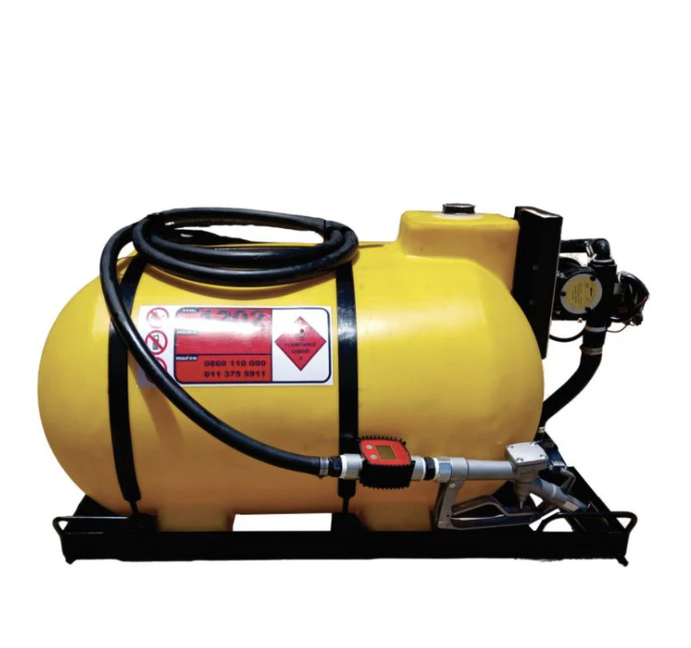 200l Diesel bowser 40lpm-12v-exec horizontal unit Specifications: 200Lt Heavy duty Horizontal tank - Sasol approved material 12V Pump – 40 Lt/p/min, 15min duty cycle (Not waterproof) Flow Meter Digital turbine meter Inline filter (Dirt) 4m black rubber diesel hose Touch Aluminium