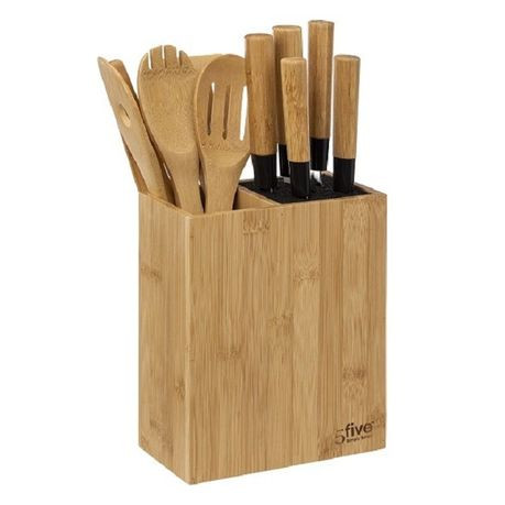 Organize your kitchen in style with the 5five Bamboo Kitchen Utensil Holder, a smart and elegant all-in-one solution designed to keep your most essential tools neatly within reach. This versatile set includes a sturdy bamboo countertop holder paired with five high-quality knives and five essential cooking utensils, offering everything you need for efficient and enjoyable meal preparation.