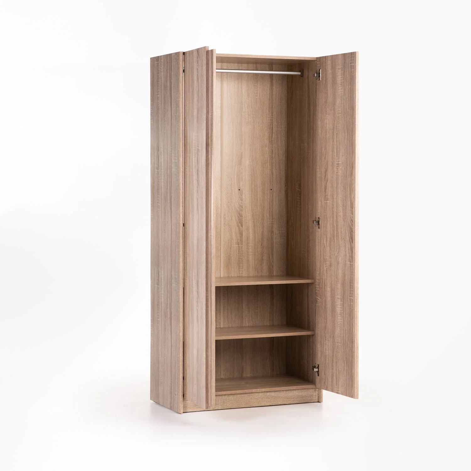 This contemporary Alba 2 Door Robe s a practical and stylish addition to any living space. Its natural wood finish and two-door design offers plenty of room to store and organise your wardrobe, with a clothing rod for hanging items. Create a tidy and organised home with this functional and stylish piece.
