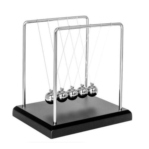 - Demonstrates a pendulum theory, also demonstrates the Laws of conservation of Momentum and Energy