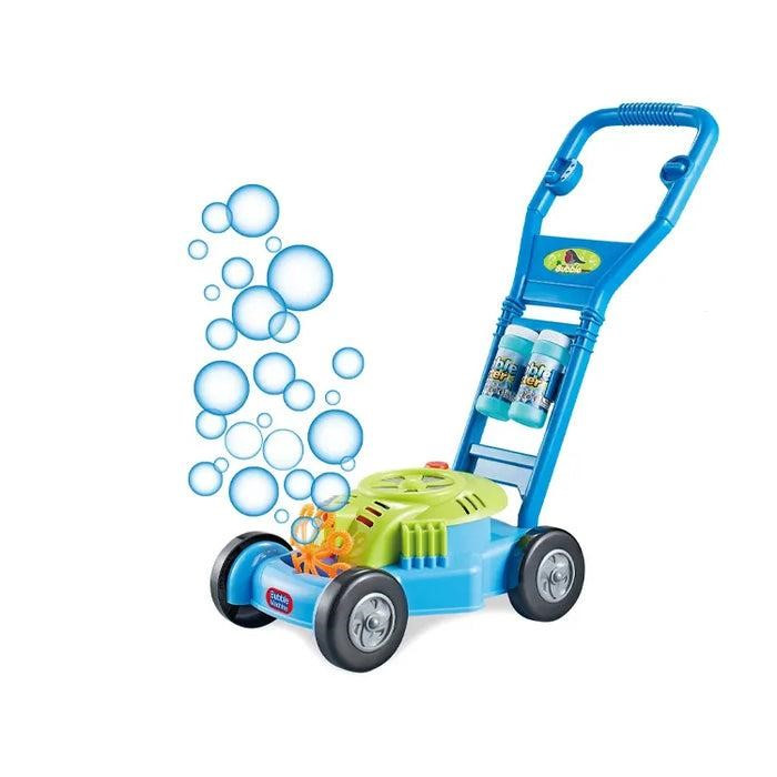 arents will love the newly designed bubble wheel with mess-free construction. Assembly is quick and easy. Simply slide the ends of the handles on to the mower, Install the bubble bottle at the bottom, and need 3 * 1.5V AA batteries (not included) and you’re ready to go