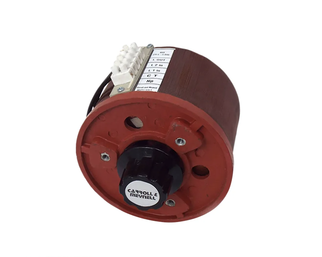Carroll & Meynell variable autotransformers have variable voltages and are ideal for controlling AC voltages. The rotating arm with a carbon brush changes the output voltage.