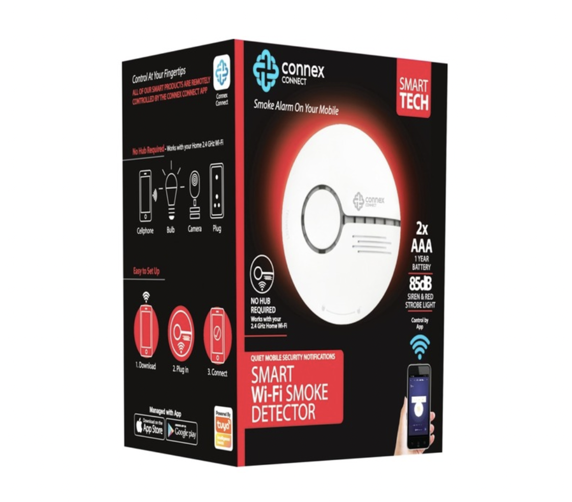 • No hub required, the detector connects to your 2.4 Ghz home Wi-Fi network via your smartphone and the Connex Connect app.