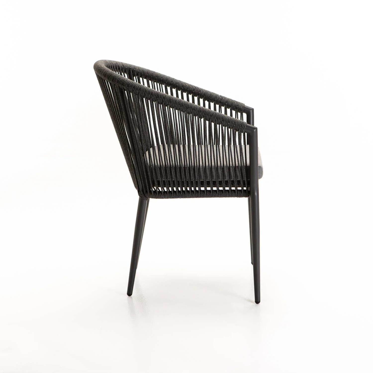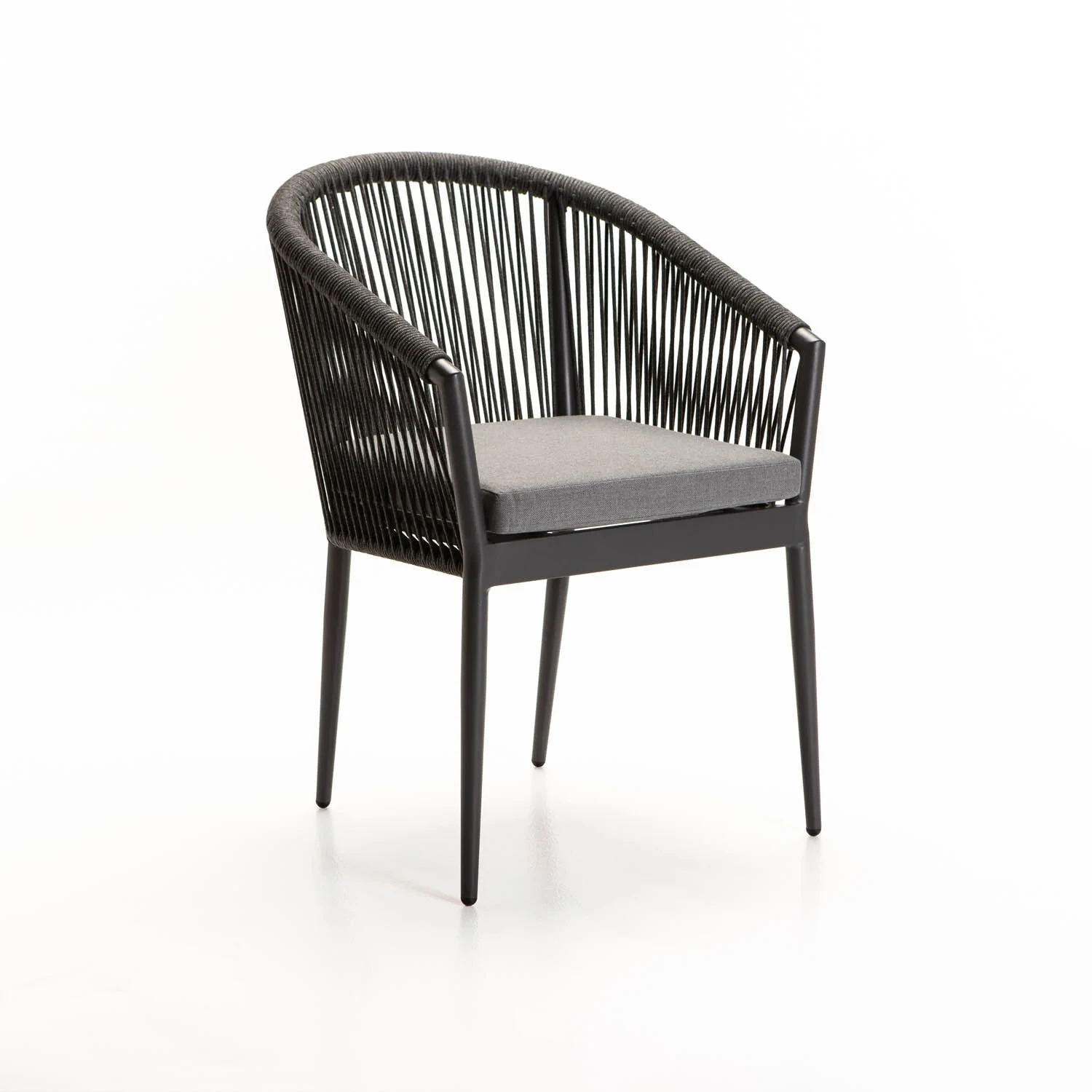 The Corsica Outdoor Chair is crafted with a curved back and rustproof aluminium construction, allowing for all-weather use. Its Olefin rope back rest ensures comfort and durability, while the 100% solution-dyed outdoor polyester cushions are UV protected and can withstand the sun and elements. Plus, the cushion covers are removable for easy cleaning. Chairs can be stacked for easy storage.