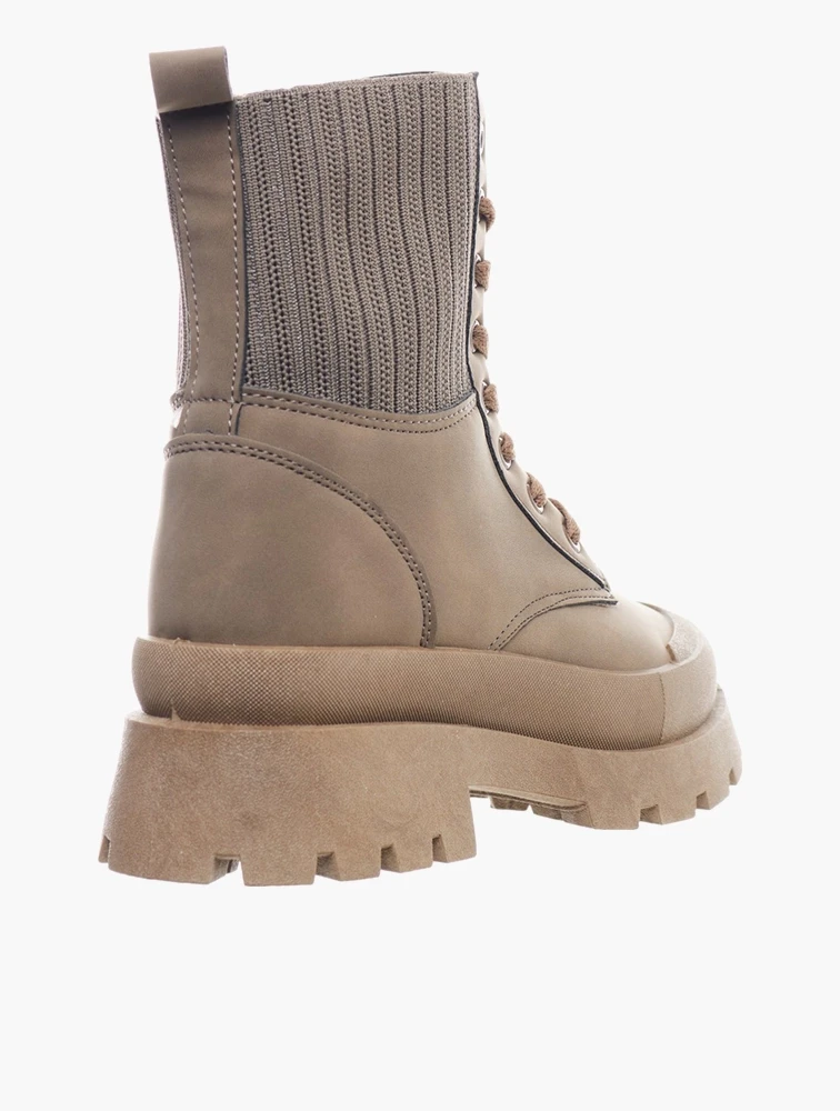 Daily Finery Taupe Knit Lace Up Boots