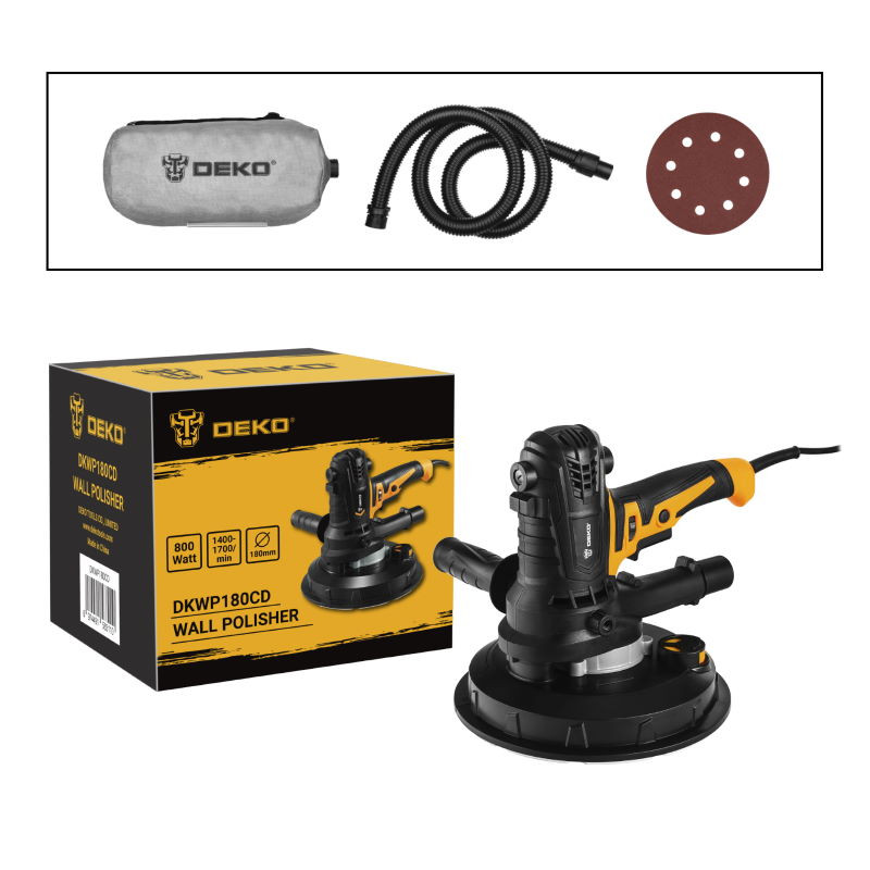 The DEKO Tools 900W Electric Drywall Sander with a No-Load Speed of 1400-2700rpm is a must-have if you work with drywalls. Its extendable handle makes it suitable for not only walls but ceilings too. The The The suction strength adjustment Comes in a DEKO Tools box.