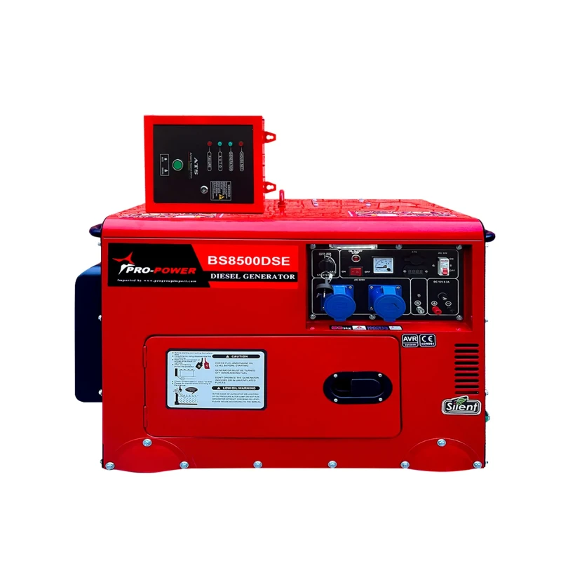 Diesel Silent Generator Rated Power: 6.0KW Max. Power: 6.5KW Rated voltage: 220v single phase Power Factor cos 1 Insulation H Wheels included Rated frequency 50hz Excitation Transistorized: self-excitation brush with AVR Fuel Tank Capacity(L): 16 Fuel consumption: