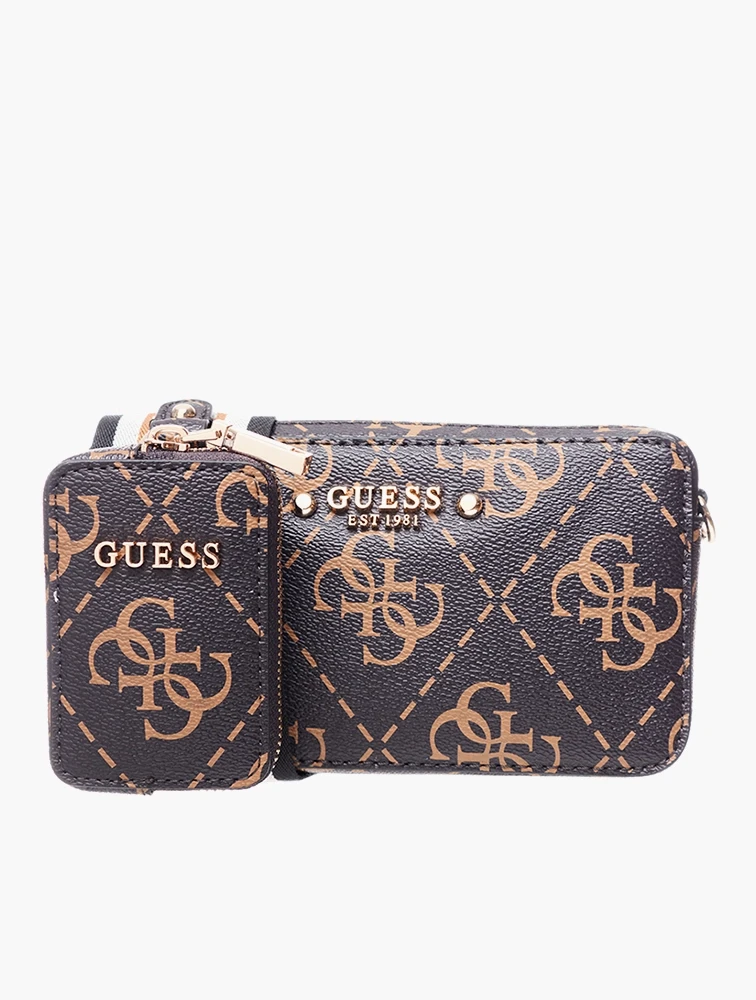 GUESS Brown Logo Rea Quattro G Mini Camera Crossbody