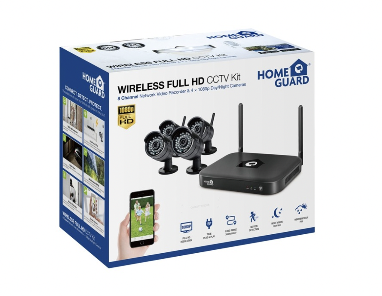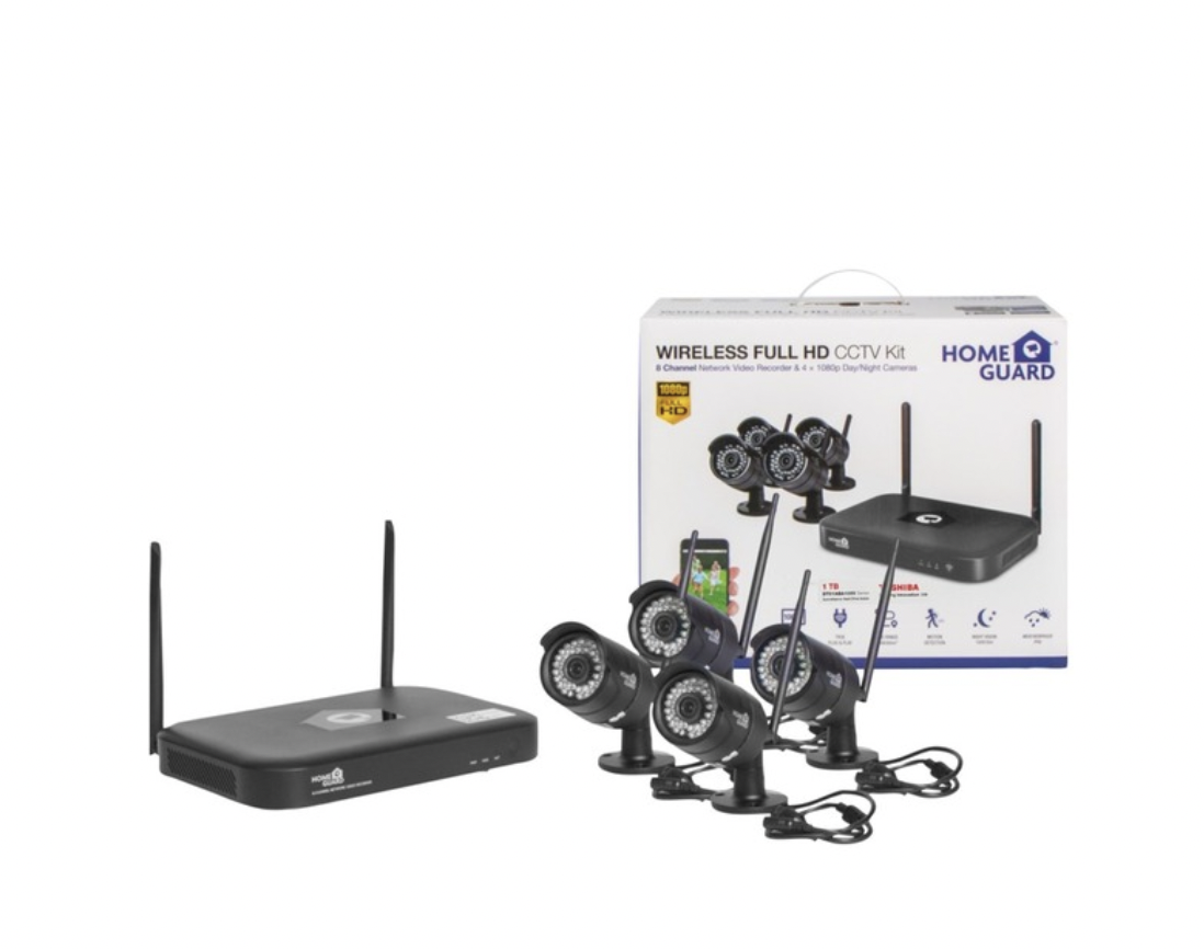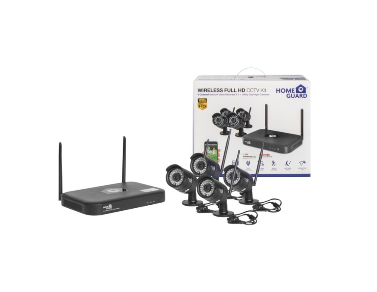 Full Wireless CCTV Kit, 1 TB Hard Drive,1 × 8CH Network Video Recorder & 4 × 1080p Full HD Wireless Cameras