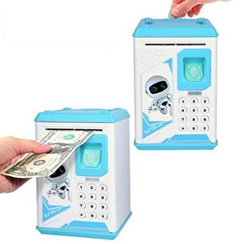 Product Features: -Cute design -LED turn switch -Has both a coin slot and note slot -Can also be open up to keep larger personal items -Keypad code -Simulated fingerprint scanner -Material: plastic -Ages: 3+