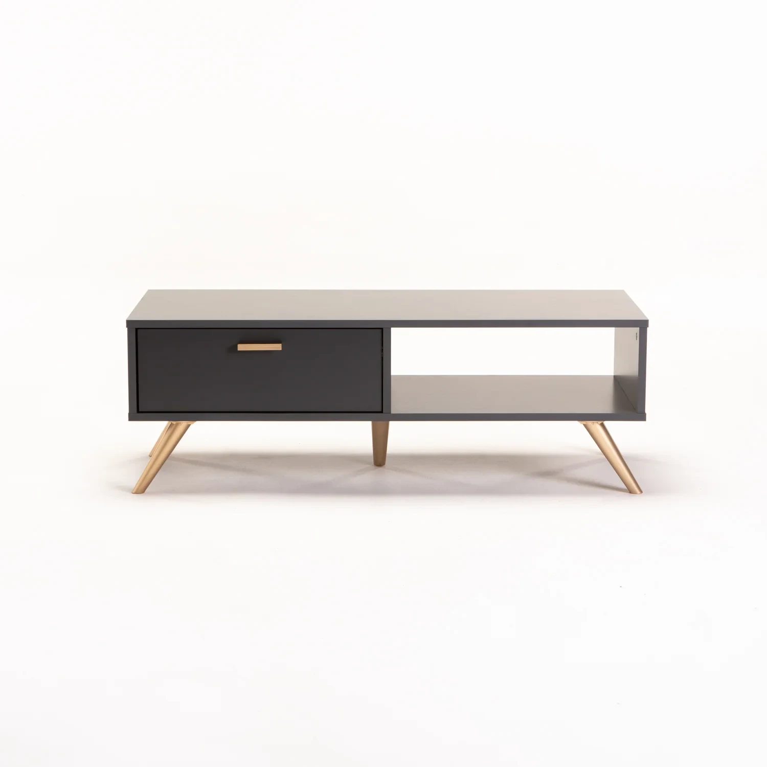 The Lena Coffee Table is a perfect combination of modern design and convenience. Featuring stylish tapered legs, convenient storage, and elegant gold accents, you can give your home a sophisticated update.