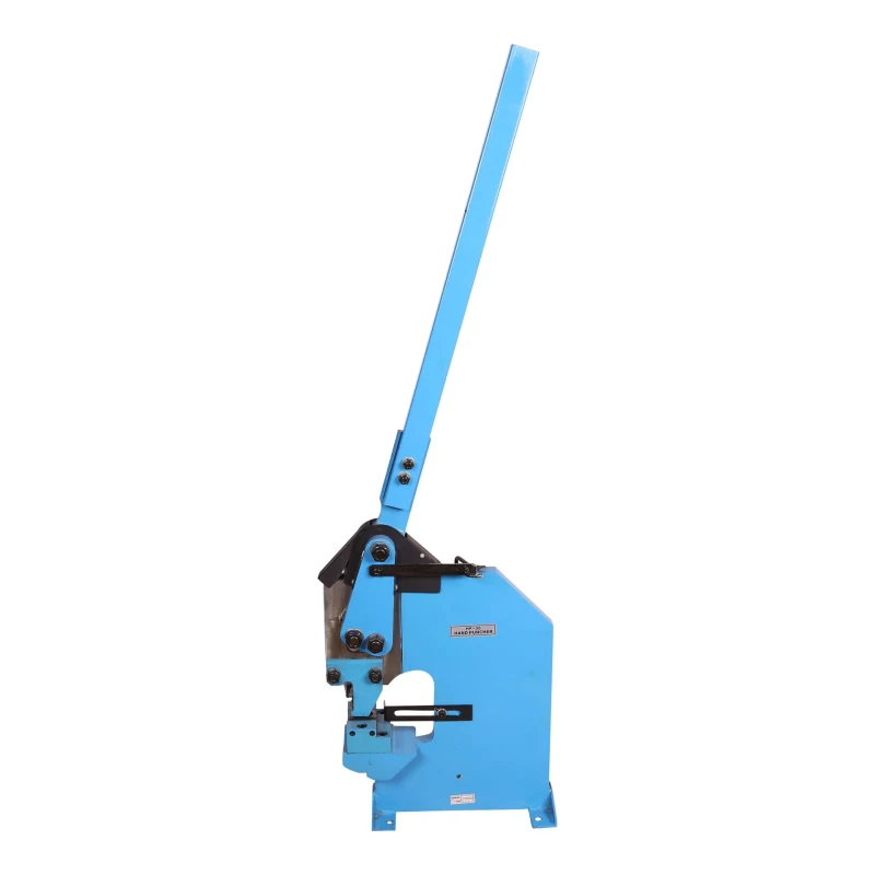 This medium-sized hand punch is ideal for punching round and square profiles into sheet metal. It features a thick steel frame and is extremely sturdy when mounted to a concrete floor.