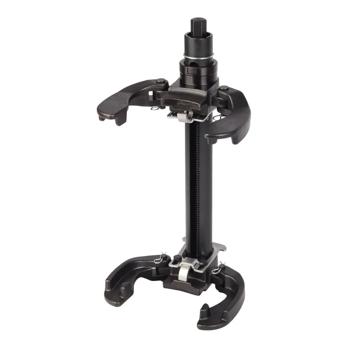 Designed for safe and efficient coil spring removal, the Macpherson Spring Compressor Extractor from Adendorff features a 450 mm screw with body length, 2300 kg maximum clamp force and a jaw range of 100 to 265 mm. Ideal for automotive repairs and suspension work.