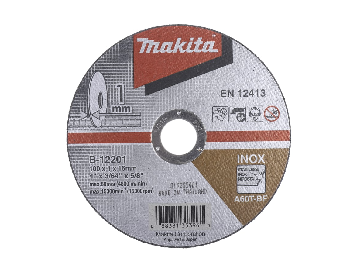 The Makita Cutting Disc is made up of aluminium oxide. It is B-series flat centre thin cutting wheel and contains 10pcs shrink wrapped.