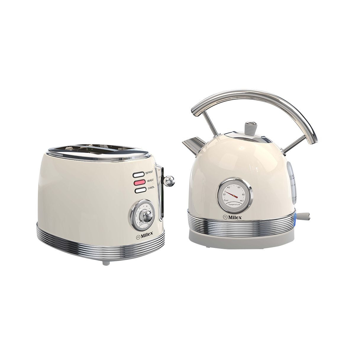 The Milex Retro-style Breakfast Combo is the perfect way to start your day. This combo includes the Vintage Toaster and the Retro 360° kettle, both with chromed finishes and beautiful designs. The toaster features 6 temperature settings, extra-wide slots, and a removable stainless steel crumb tray. The kettle has a 360-degree, detachable swivel base and a generous 1.8-litre capacity. With the Milex Retro-style Breakfast Combo, you'll enjoy the perfect toast and a hot cup of tea or coffee every morning.