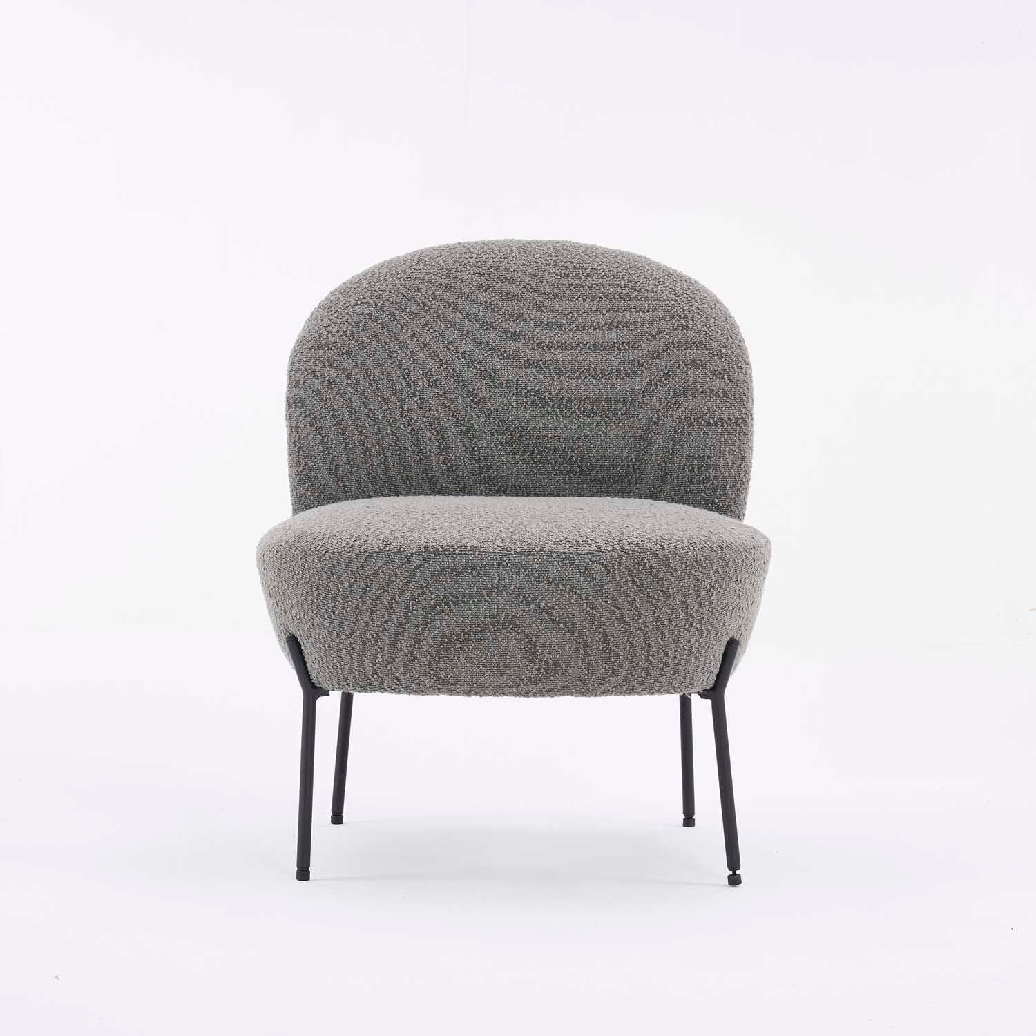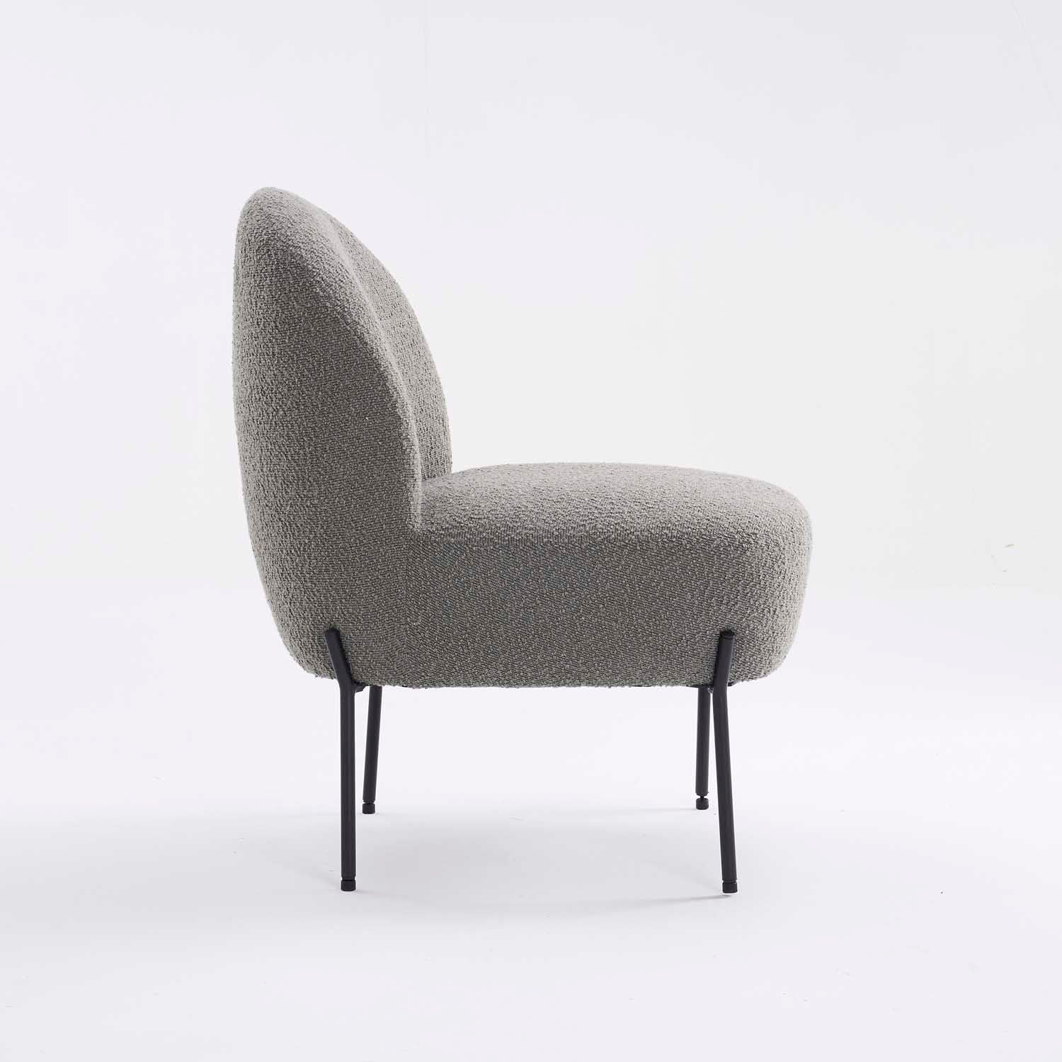 The Scarlett Boucle Fabric Chair is the epitome of tactile luxury, enveloped in sumptuous boucle fabric that's as pleasing to the touch as it is to the eye. The chair's elegantly rounded silhouette is supported by slender, powder-coated metal legs, creating a contrast that accentuates its soft, inviting form. This piece is a chic and cosy addition, perfect for adding a touch of sophistication and texture to any modern interior.