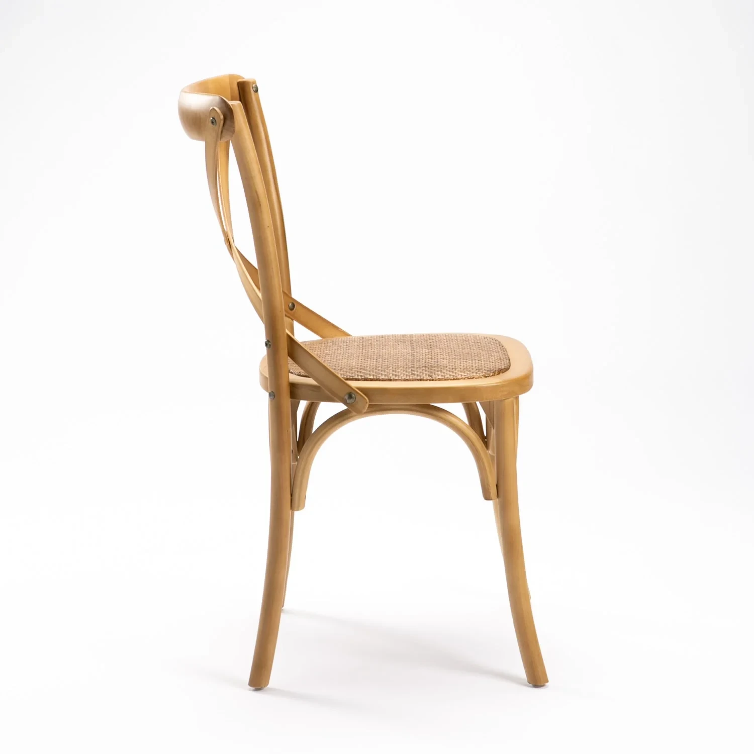 Our Topaz Dining Chair is a timeless classic crafted with lightweight yet strong birchwood and featuring curved lines. This cross back bistro-style chair offers a comfortable woven seat and a smooth finish, making it the perfect addition to any home. Enjoy its classic design for years to come.