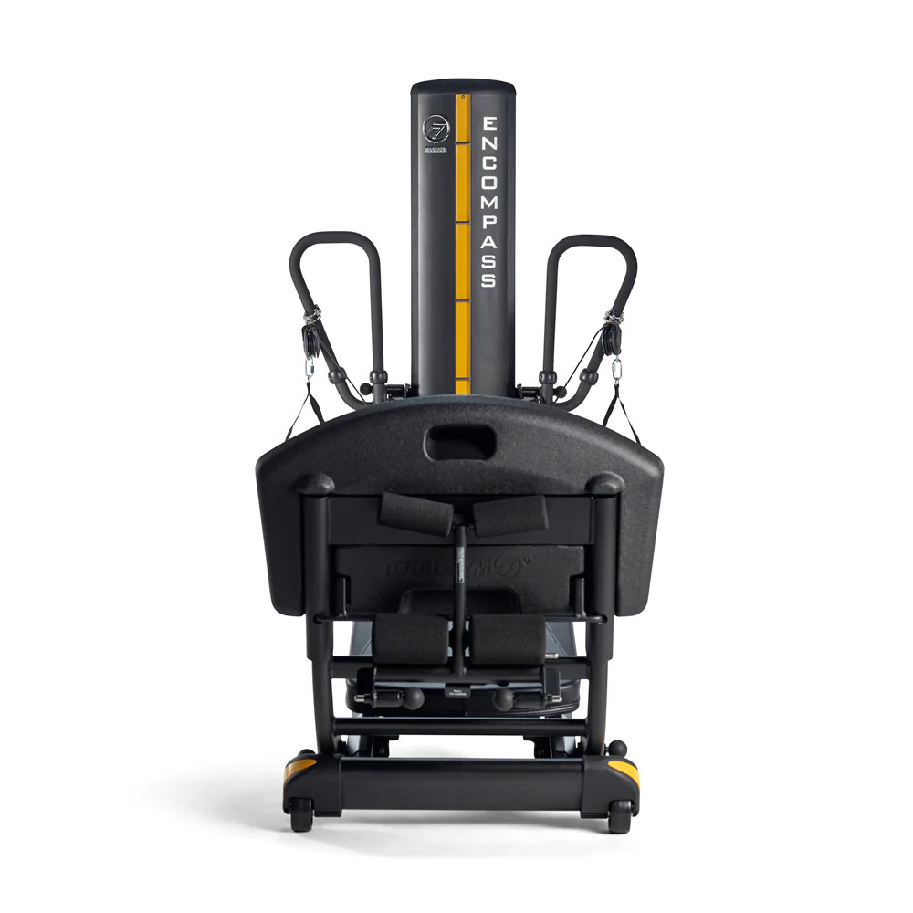 - Multiple center-pulley attachment points double arm-cable load and increase lower extremity range of motion.