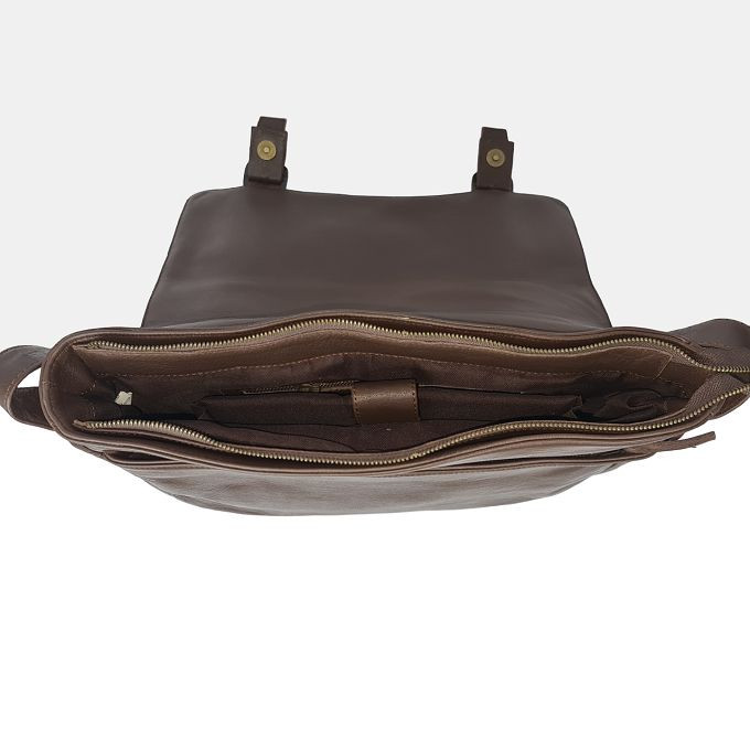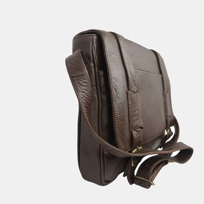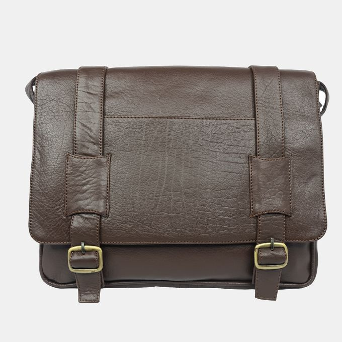 Specifications:Leather: Genuine Buffalo LeatherColour: Brown with Visible GrainFittings: BrassOverall Dimensions: 38 cm L x 31 cm H x 6 cm WTotal Compartments/Slots/Pockets: 5